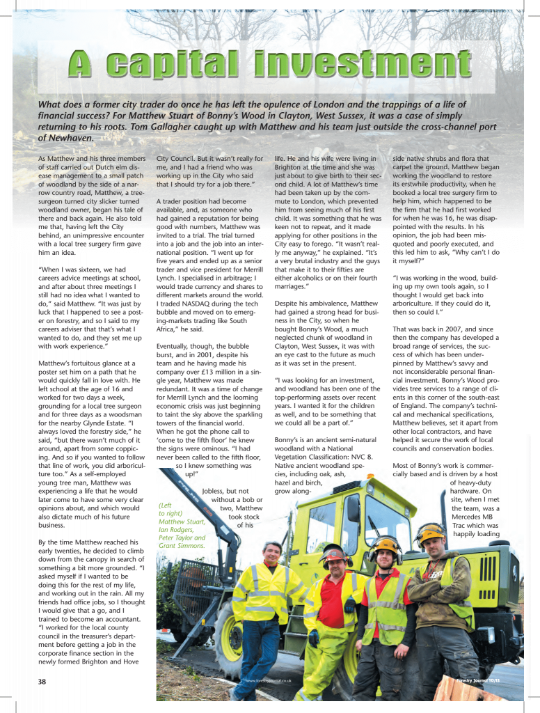 An interview with Matthew Stuart published by the Forestry Journal detailing our founder’s journey from city trading to a successful arborist.